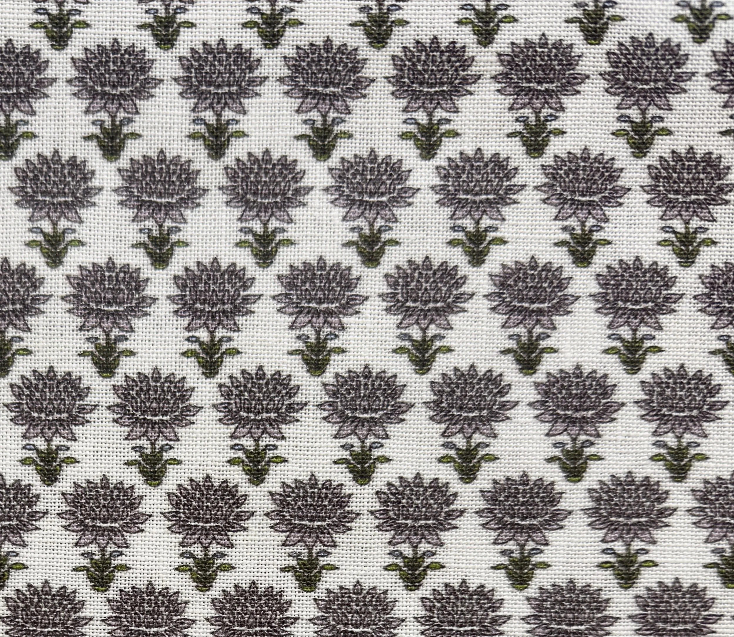 Textiles are printed on 100% Belgian Linen in a 54" width. All patterns can be custom colored.